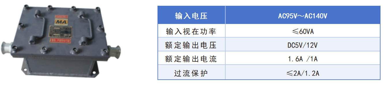 采用礦用澆封兼本安型防爆結(jié)構(gòu),具有體積小、重量輕,安裝方便,安全可靠等特點(diǎn),適用于 存在煤礦井下有瓦斯、煤塵等爆炸性氣體的危險環(huán)境中,給本安型設(shè)備供電。