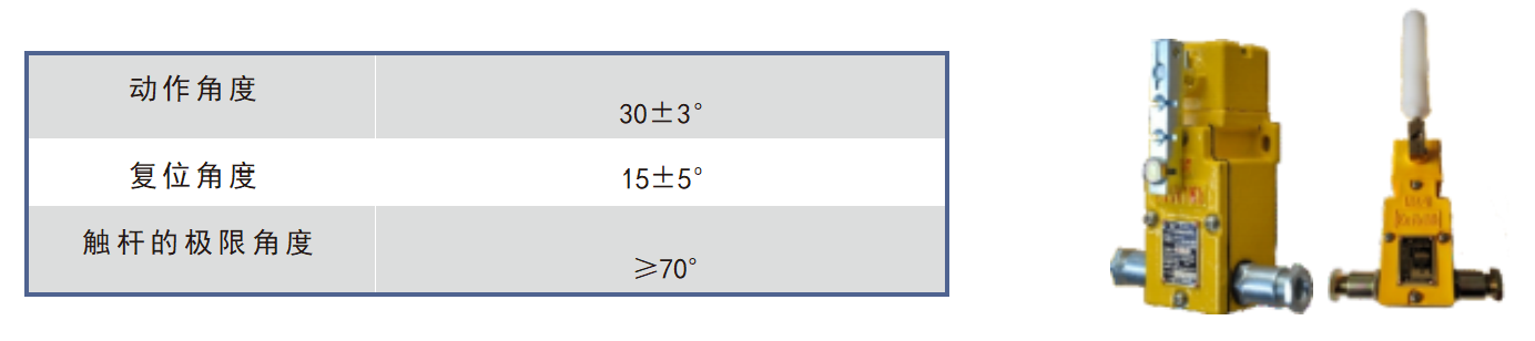 采用單級雙向跑偏開關(guān),具有體積小、重量輕、強(qiáng)度高的特點(diǎn);觸桿外套阻燃尼龍棒,能靈活 滾動伸縮,具有耐磨、適用性強(qiáng)的特點(diǎn)。主要應(yīng)用于煤礦輔助運(yùn)輸設(shè)備的電氣信號檢測。