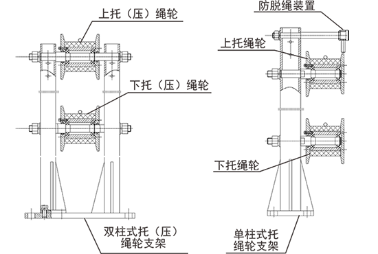 無極繩絞車帶動(dòng)鋼絲繩無極循環(huán)運(yùn)行,行人將卡繩棒卡住上山運(yùn)行的鋼絲繩,并由上山運(yùn)行的鋼絲繩將人拖動(dòng)向上助力上坡,